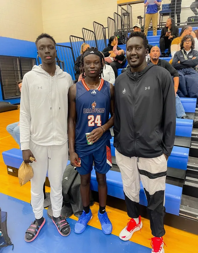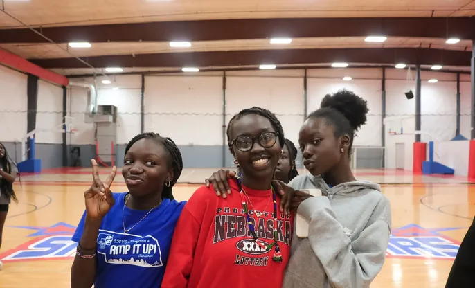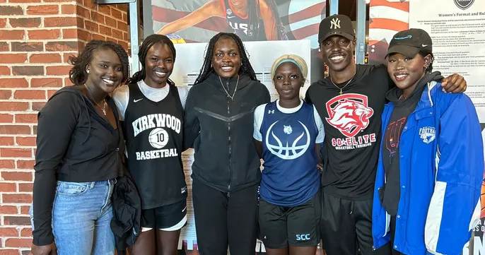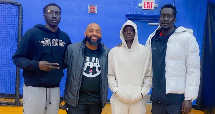 ROSS Leaders Mentors Awal Ajak, Jacob Idra, and Ashol Aguek with ROSS student athletes Nyawaraga Jock (Southeast Community College) and Lizzy Puot (Kirkwood Community College).